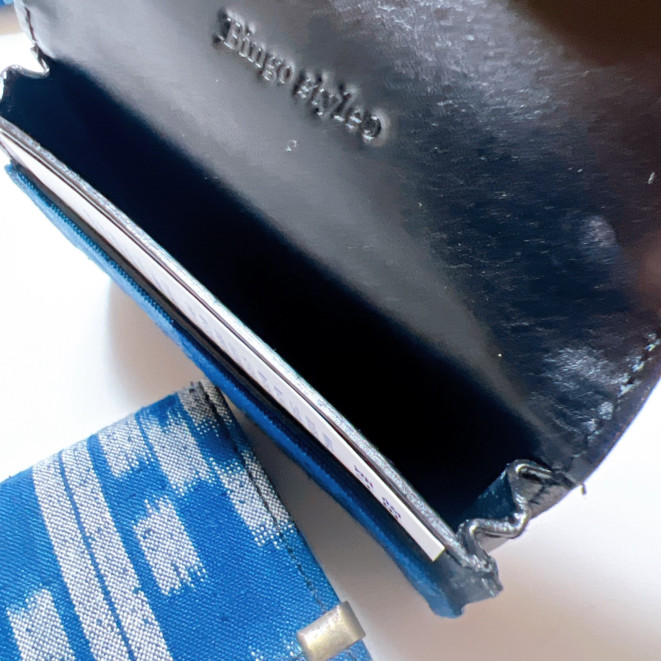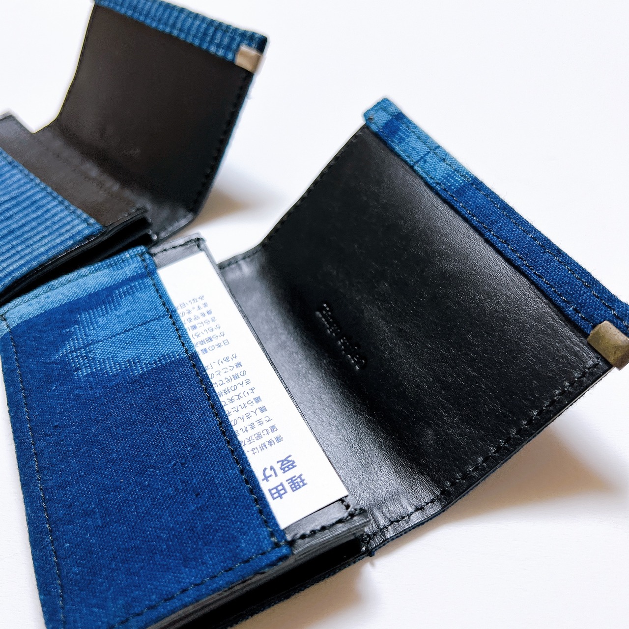 備後絣の手触りを感じながら、大切な名刺を皮がしっかり受け止めます。